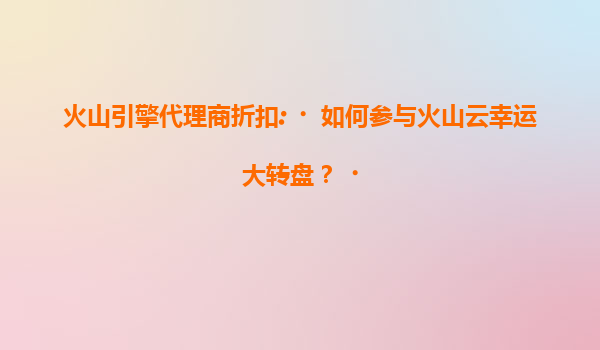 2025-07-17火山引擎代理商折扣:如何参与火山云幸运大转盘? 一、火山云与代理商的双赢生态 火山引擎作为字节跳动旗下的云计算服务品牌,凭借其在大数据、AI及全球基础设施领域的优势,为企业提供...