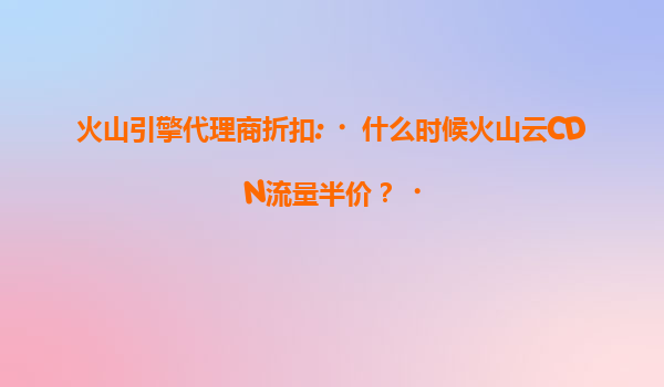 2025-07-17火山云CDN流量折扣活动解析 近年来,随着互联网流量成本持续攀升,企业降本增效需求日益强烈。火山云作为字节跳动旗下云计算品牌,凭借技术实力和资源整合能力,近期通过代理商渠道推出限时CDN流量半价活动,为中小...
