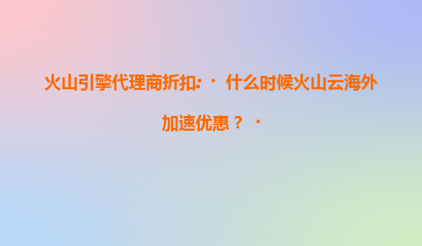 2025-07-17火山引擎代理商折扣:怎样解锁火山云神秘折扣? 一、火山云的核心优势 在选择云计算服务时,性价比和技术能力是关键。火山云作为字节跳动旗下的云计算品牌,凭...