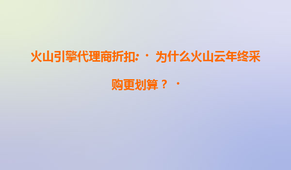 2025-07-17火山云年终采购为何更划算?深度解析代理商折扣与产品优势 代理商折扣政策释放年终红利 火山引擎通过代理商体系推出阶梯式折扣策略,年终大单采购可享受更高比例返点。相较于日常采购,企业通过集中预...