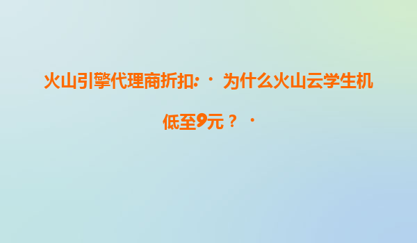 2025-07-17火山引擎代理商折扣:为什么火山云学生机低至9元? 引言:云计算市场的学生福利 在数字化转型的浪潮下,云计算已成为企业和个人开发者的基础设施。火山引擎作为字节跳动旗下的云服务品牌...
