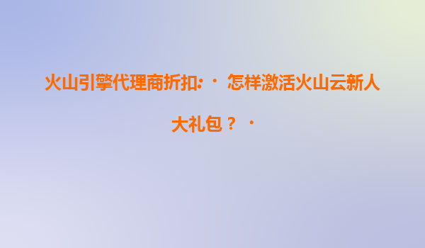 2025-07-16火山引擎代理商折扣:如何激活火山云新人大礼包? 一、火山云的核心优势 火山云作为字节跳动旗下的云计算服务品牌,依托字节跳动强大的技术积累和全球基础设施,为用户提供高性能、高可靠的云服务...