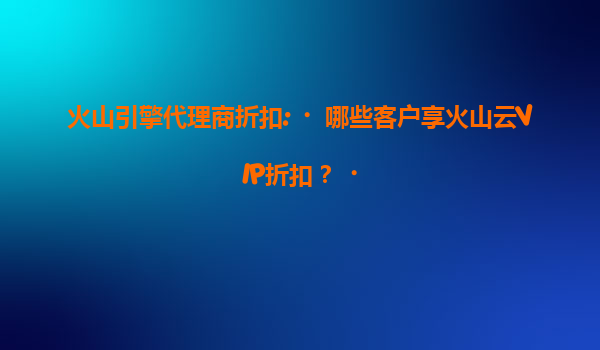 2025-07-16火山云VIP折扣政策详解:哪些客户可享专属优惠? 作为字节跳动旗下的企业级技术服务品牌,火山引擎通过代理商体系为不同规模客户提供差异化服务。其中火山云VIP折扣政策备受关注,本文将系统解析适用对象、核心优...