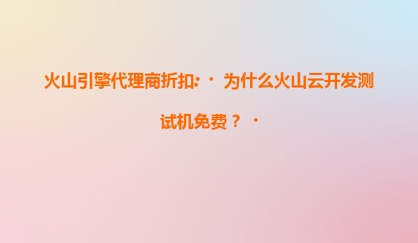 火山引擎代理商折扣解析:为什么火山云开发测试机免费? 一、火山云的免费开发测试机政策 火山云作为字节跳动旗下的云计算服务品牌,近年来通过“开发测试机免...