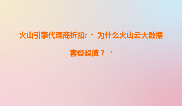 2025-07-16火山引擎代理商折扣:为什么火山云大数据套餐超值? 一、火山云大数据套餐的核心优势 火山云作为字节跳动旗下的云计算品牌,其大数据套餐凭借以下核心能力成为企业数字化转型的首选: ...