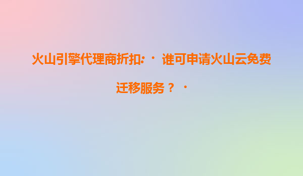 2025-07-16火山引擎代理商折扣:谁可申请火山云免费迁移服务? 一、火山云的核心优势 火山云作为字节跳动旗下的云计算品牌,依托全球领先的技术架构和丰富的行业经验,为...