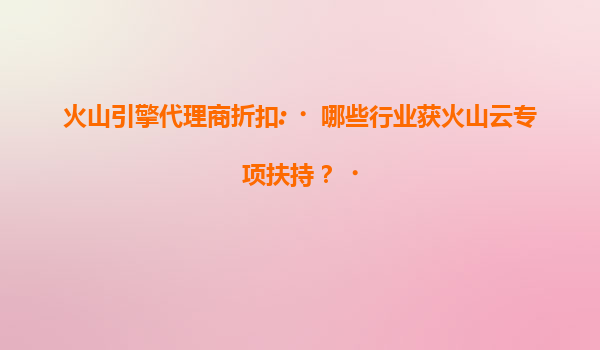 2025-07-16火山引擎代理商折扣:哪些行业获火山云专项扶持? 引言 随着数字化转型的加速推进,云计算已成为企业发展的核心驱动力。火山引擎作为字节跳动旗下的云服务平台...