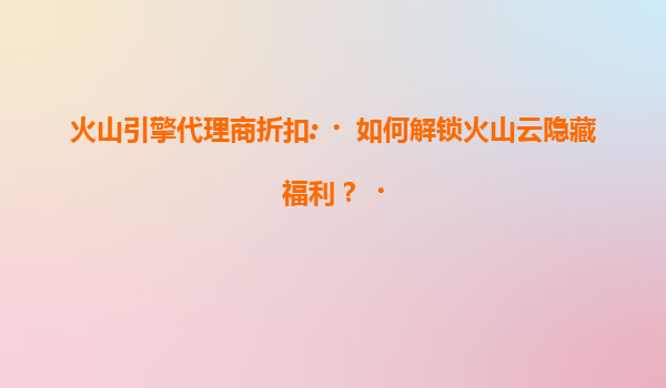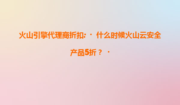火山引擎代理商折扣:火山云安全产品5折优惠全解析 一、火山云安全产品5折活动时间 火山引擎作为字节跳动旗下的云计算服务平台,会定期通过代理商渠道推出限时折扣活动。目前,火山云安...