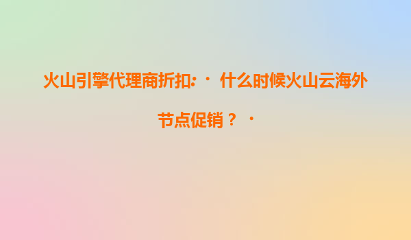 2025-07-15火山引擎代理商折扣:揭秘火山云海外节点促销时机与核心优势 一、火山云海外节点促销时间预测 火山云作为字节跳动旗下的云计算服务品牌,其海外节点促销活动通常遵循行业规律与企业战略节奏。根据...