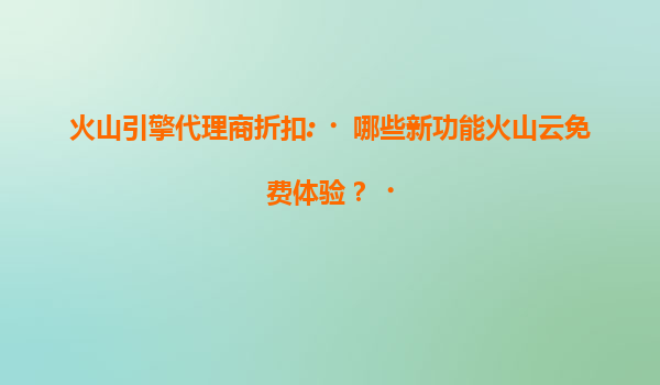 2025-07-16火山引擎代理商折扣:哪些新功能火山云免费体验? 一、火山云的核心优势与免费体验功能 火山引擎作为字节跳动旗下的云服务平台,凭借强大的技术积累和资源整合能力,为企业用户提供高性...