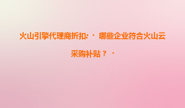 2025-07-15火山引擎代理商折扣政策解读:哪些企业符合火山云采购补贴? 一、火山云补贴政策面向的核心企业类型 火山引擎通过代理商体系为特定企业客户提供云服务采购补贴,主要覆盖以下三类企业:首先,数字化转型中的传...
