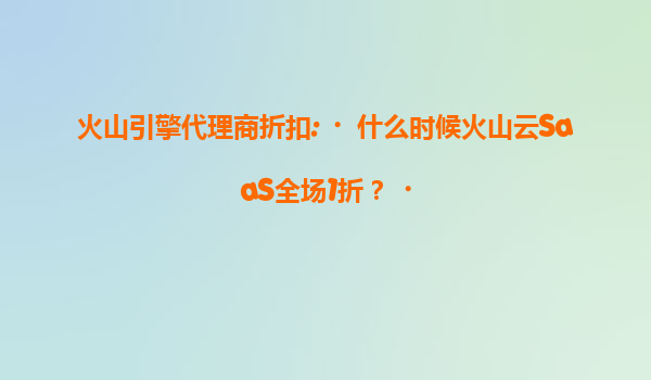 2025-07-15火山引擎代理商折扣:什么时候火山云SaaS全场1折? 火山云SaaS全场1折活动解析 作为企业数字化转型的重要合作伙伴,火山引擎(字节跳动旗下云服务平台)凭借其强大的技术实力和丰富的行...