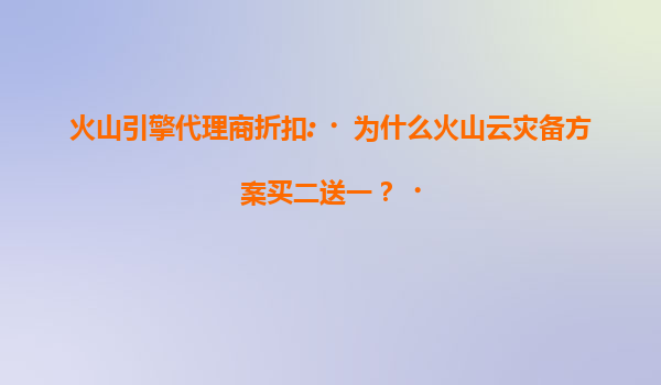 2025-07-15火山引擎代理商折扣解析:为什么火山云灾备方案买二送一? 一、火山云灾备方案的独特优势 火山引擎作为字节跳动旗下的云计算品牌,其灾备方案在行业内具有显著的技术和服务优势: 全球骨干网络布局:...