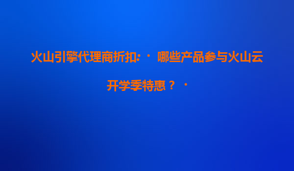 2025-07-14火山引擎代理商折扣:哪些产品参与火山云开学季特惠? 一、火山云开学季惠享活动概览 随着开学季的到来,火山引擎旗下火山云平台针对教育行业及广大开发者推出...