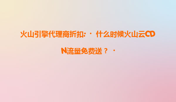 2025-07-14火山引擎代理商折扣:揭秘火山云CDN流量免费赠送活动 在数字化转型的浪潮下,云计算与CDN服务已成为企业提升用户体验、降低运营成本的核心工具。作为字节跳动旗下的云计算品牌,火山引擎凭借...