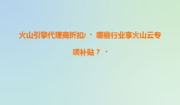 2025-07-14火山引擎代理商折扣:哪些行业享火山云专项补贴? 一、火山云的核心优势解析 火山引擎作为字节跳动旗下的云计算品牌,依托全球化的基础设施和领先的技术能力,为企业提供了高性能、高可...