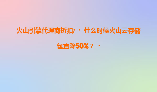 火山引擎代理商折扣揭秘:何时火山云存储包直降50%? 一、火山云存储包的限时折扣活动 近期,不少用户关注到火山引擎通过代理商渠道推出的存储包折扣活动,其中"直降50%"的优惠力度尤为...