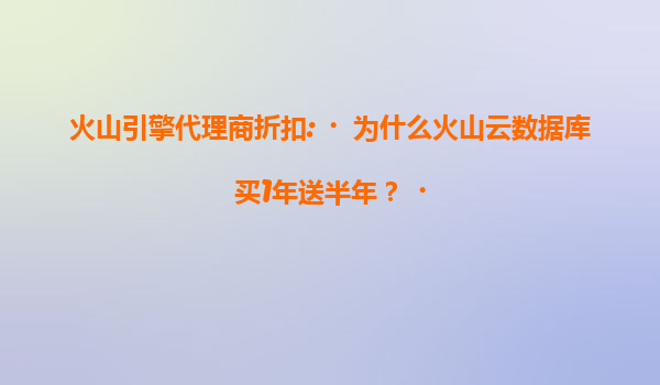 2025-07-14火山引擎代理商折扣解析:为何火山云数据库推出"买1年送半年"优惠? 一、活动政策深度解读 火山引擎近期通过代理商渠道推出"火山云数据库买1年送半年"的促销策略,实质是1.5倍时长折算的折扣方案。按行业惯例计...