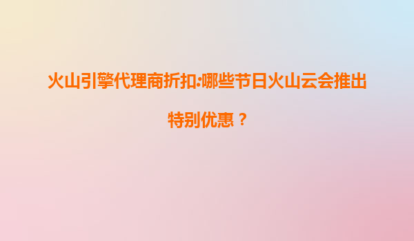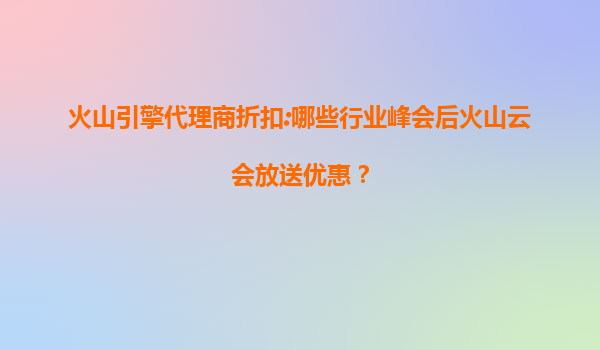 火山引擎代理商折扣:行业峰会期间火山云的优惠策略解析 一、火山云的核心优势与优惠政策的关联性 火山引擎作为字节跳动旗下的云计算服务品牌,凭借以下优势吸引企业用户通过代理商获取折扣: ...