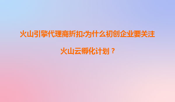 2025-07-13火山引擎代理商折扣:为什么初创企业要关注火山云孵化计划? 一、火山云的技术优势和资源支持 火山引擎作为字节跳动旗下的云服务平台,拥有强大的技术背景和资源积累。其云计算、大数据、AI等核心技术均经过抖...