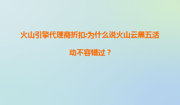 2025-07-12火山引擎代理商折扣:为什么说火山云黑五活动不容错过? 在当今数字化时代,云计算已经成为企业发展的关键基础设施之一。而作为国内领先的云计算服务提供商之一,火山引擎旗下的火山云在此次黑色星期...