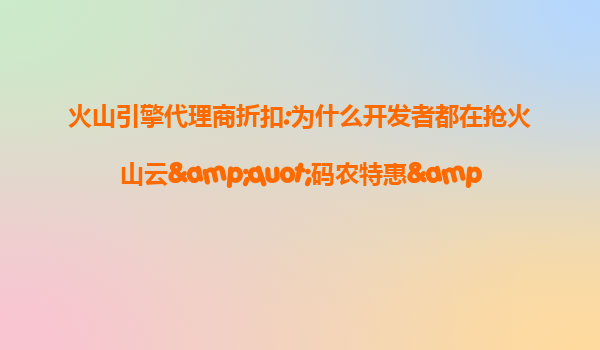2025-07-12火山云季度末清仓促销:代理商折扣与最佳上云攻略 为什么选择火山云?三大核心优势解析 火山云作为字节跳动旗下的云计算服务平台,近年来凭借其高性能计算能力、高性价比套餐及贴合企业场景的解决方案快速崛起...
