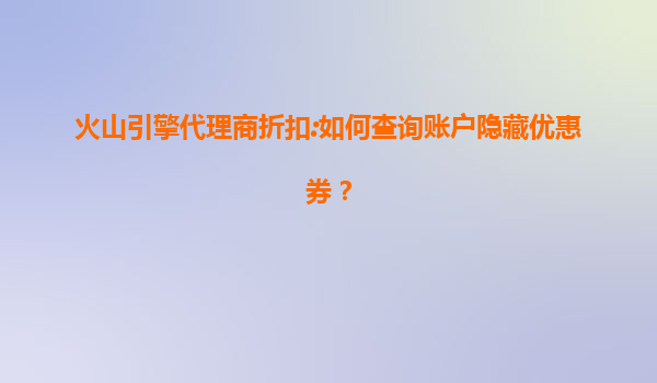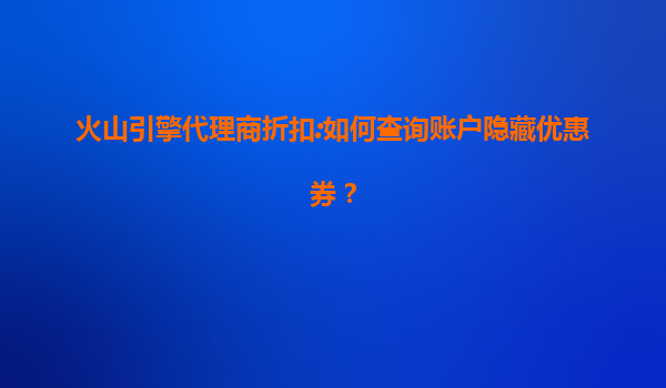 2025-07-11火山引擎代理商折扣:如何查询账户隐藏优惠券? 一、火山引擎的核心优势 作为字节跳动旗下的企业级技术服务品牌,火山引擎凭借以下优势成为企业数字化转型的首选: ...