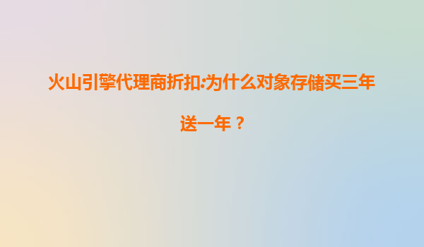2025-07-11火山引擎对象存储:买三年送一期的策略解读与产品优势 超值促销背后的商业逻辑 火山引擎此次推出的"买三年送一年"对象存储优惠活动,本质上是一种双赢的商业策略。通过延长用户合约周期,平台能够更好地规划资源分...