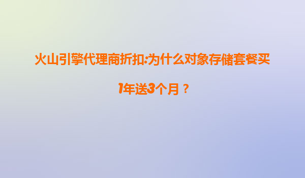 2025-07-10火山引擎代理商折扣:对象存储套餐买1年送3个月背后的商业逻辑 一、活动背景:让利用户的市场策略 近期,火山引擎通过代理商推出“对象存储套餐买1年赠送3个月”的限时优惠活动,这一举措迅速引发企业用户...