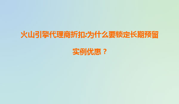 火山引擎代理商折扣:为什么要锁定长期预留实例优惠? 一、云服务成本优化的核心逻辑 在数字化转型浪潮中,企业上云已成为必然选择,但如何控制不断增长的云计算成本成为关键挑战。火山引擎...