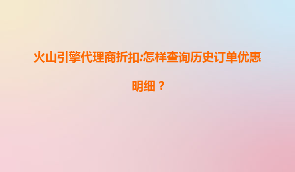 2025-07-08火山引擎代理商折扣:如何查询历史订单优惠明细及火山云核心优势解析 一、如何查询历史订单优惠明细 作为火山引擎代理商,了解历史订单的优惠明细对财务对账和客户管理至关重要。以下是...