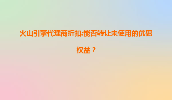 2025-07-08火山引擎代理商折扣权益解析:能否转让未使用的优惠权益? 作为企业数字化转型的强力助手,火山引擎凭借其高性能云计算服务与灵活的商业政策广受青睐。其中,代理商折扣机制是企业降本增效的重要方式之一。本文将详...