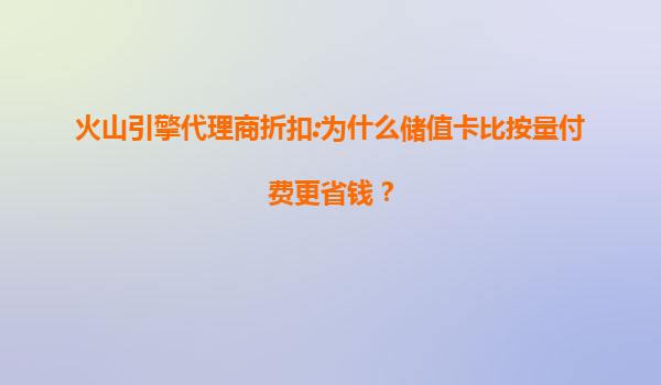 2025-07-08火山引擎代理商折扣:储值卡为何比按量付费更省钱? 一、储值卡的核心优势:预存享折扣 火山引擎代理商提供的储值卡采用"预付费+阶梯优惠"模式,用户预先充值即可享受最高达30%的额外资源赠送。例如充值10万元可能...