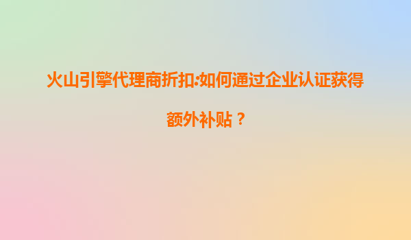 2025-07-08火山引擎代理商折扣:如何通过企业认证获得额外补贴? 一、火山引擎的核心优势与代理商政策背景 火山引擎作为字节跳动旗下的云服务品牌,凭借其高性能计算、大数据处理及AI能力,已在市场中建立了技术领先地...