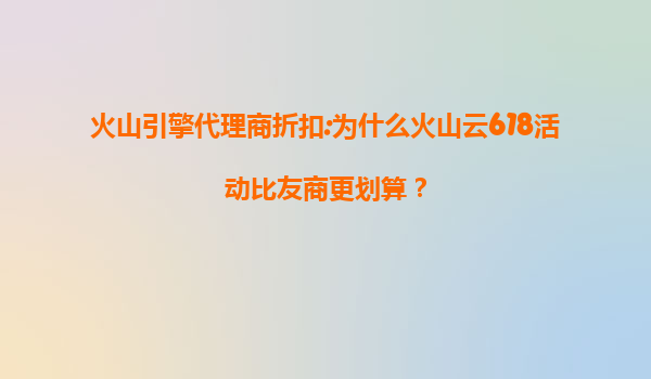 2025-07-07火山引擎代理商折扣:为什么火山云618活动比友商更划算? 一、火山云的核心优势 在云计算市场竞争激烈的今天,火山引擎旗下的火山云凭借独特的技术架构和资源布局,为用...
