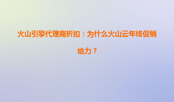 2025-07-07火山引擎代理商折扣:为什么火山云年终促销给力? 引言:年终促销背后的价值 随着数字化转型加速,云计算服务成为企业降本增效的核心工具。火山引擎作为字节跳动旗下的云服务平台,凭借...