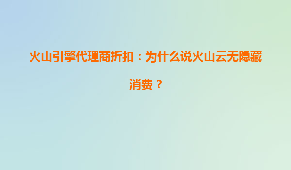 2025-07-06火山引擎代理商折扣:为什么说火山云无隐藏消费? 引言:透明消费的云计算时代 在数字化转型的浪潮中,企业对云服务的需求日益增长,但复杂的计费模式和隐藏费...