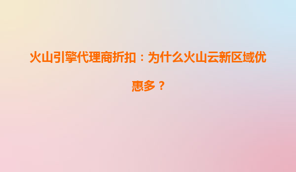 火山引擎代理商折扣:为什么火山云新区域优惠多? 近年来,云计算市场竞争激烈,各大云服务提供商纷纷推出各种优惠政策吸引客户。火山引擎作为字节跳动旗下的云计算品牌,凭借其强大的技术实力和资源优势,迅速...