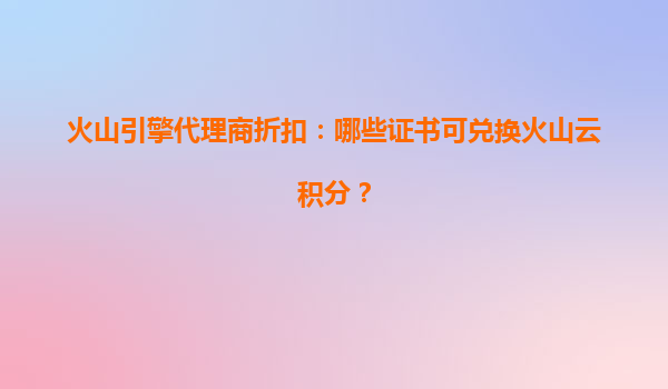 2025-07-06火山引擎代理商折扣:哪些证书可兑换火山云积分? 一、火山云与代理商的协同优势 火山云作为字节跳动旗下的云计算品牌,提供稳定高效的云服务解决方案,涵盖计...