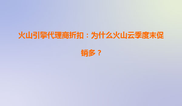 2025-07-06火山引擎代理商折扣:为什么火山云季度末促销多? 引言 近年来,云计算市场竞争日益激烈,各大云服务提供商纷纷推出各种促销活动以吸引客户。火山引擎作为字节...