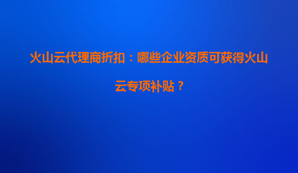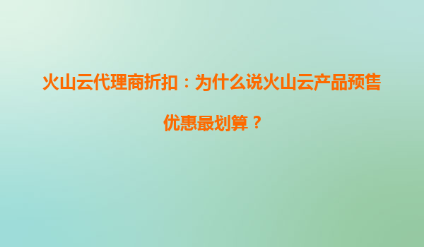 火山云代理商折扣:为什么火山云产品续费优惠力度大? 火山云作为国内领先的云计算服务提供商,凭借其强大的技术实力和优质的服务,吸引了众多企业和开发者。为了回馈用户,火山云代理商推出了力度较大的续费优惠政...