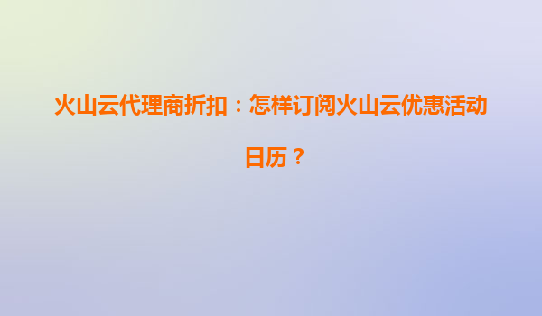 2025-07-05如何订阅火山云代理商折扣优惠活动日历? 火山云的核心优势 火山云作为领先的云计算服务提供商,凭借其高性能计算能力、弹性扩展架构和全球覆盖的数据中心网络,为用户提供稳定高效的云服务解决方案。其独...