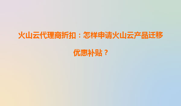 2025-07-05火山云代理商折扣:申请产品迁移优惠补贴指南 火山云的核心优势 火山云作为领先的云计算服务提供商,凭借高性能计算资源、弹性扩展能力和全球覆盖的数据中心网络,为用户提供稳定高效的云服务解决方案。其...
