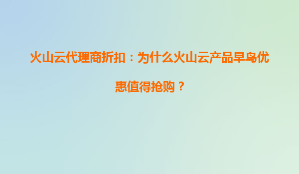 2025-07-05火山云代理商折扣:为什么火山云产品早鸟优惠值得抢购? 一、火山云的核心优势解析 火山云作为字节跳动旗下的云计算服务品牌,依托全球分布式数据中心和强大的技术中台,为用户提供高性能、高可靠的云服务...