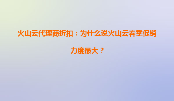 2025-07-04火山云代理商折扣:为什么说火山云春季促销力度最大? 一、火山云的核心优势解析 火山云作为字节跳动旗下的云计算服务品牌,依托集团强大的技术生态和资源整合能力,在计算、存储、网络、安全等领域具备显...