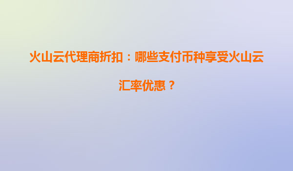 2025-07-04火山云代理商折扣:哪些支付币种享受火山云汇率优惠? 火山云的优势概述 火山云作为领先的云计算服务提供商,凭借其高性能、高可靠性和灵活的定价策略,吸引了...