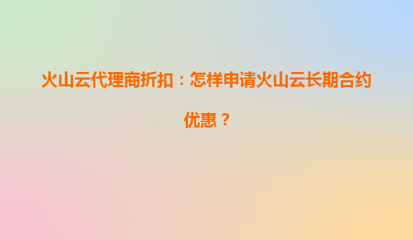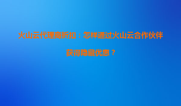 2025-07-04火山云代理商折扣:怎样申请火山云长期合约优惠? 一、火山云的核心优势 火山云作为字节跳动旗下的云计算服务品牌,凭借其强大的技术实力和资源整合能力,为企业用户提供了高性能、高可靠的云服务解决方案...