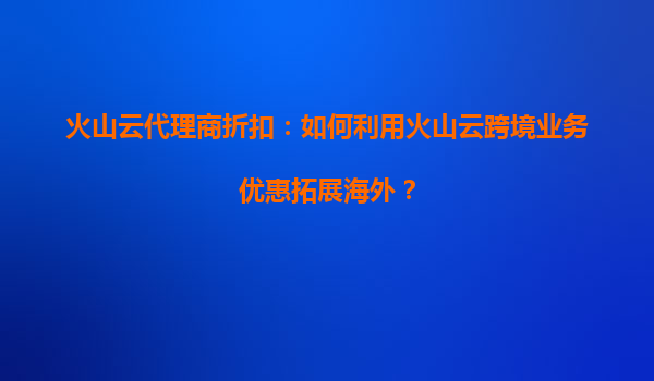 2025-07-04火山云代理商折扣:如何利用火山云跨境业务优惠拓展海外? 一、火山云的核心优势解析 火山云作为字节跳动旗下的云计算服务品牌,依托全球化基础设施和本土化服务能力,为跨境企业提供三大核心优势: ...