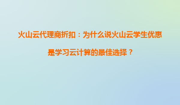 火山云代理商折扣:为什么火山云新用户首单优惠力度最大? 一、引言:云计算市场的竞争与火山云的策略 在日益激烈的云计算市场竞争中,各大云服务提供商纷纷推出各类优惠政策以吸引用户...