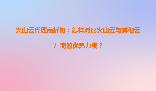 2025-07-02火山云代理商折扣:如何对比火山云与其他云厂商的优惠力度? 在云计算市场竞争日益激烈的今天,企业选择云服务时不仅关注技术性能,更注重成本优化。火山云作为国内主流云服务商之一,凭借高性价比和灵活...